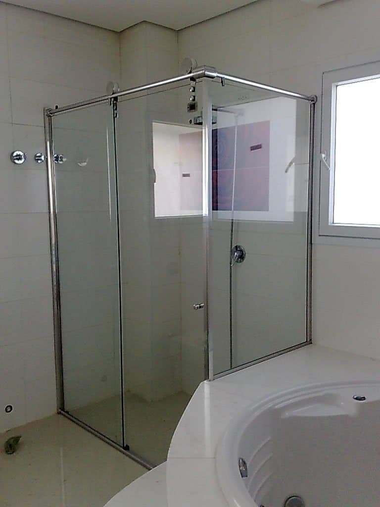 Box de Banheiro moderno em São Paulo SHOW GLASS ELEGANCE roldanas aparentes inox cromado brilhante