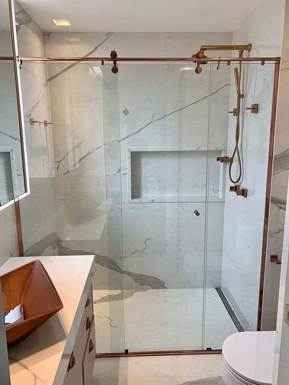 O rose gold, também conhecido como ouro rosa, é um tom que transmite elegância e requinte sutis. Combinando o calor do ouro com a suavidade do rosa, o resultado é uma paleta que adiciona uma dose de opulência a qualquer ambiente. Ao aplicar esse tom fascinante a boxes de banho, criamos um cenário de indulgência sensorial e visual.