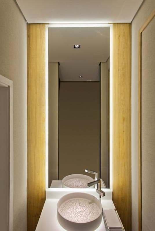 Banheiro com espelho retangular quadrado com led estilo flutuante