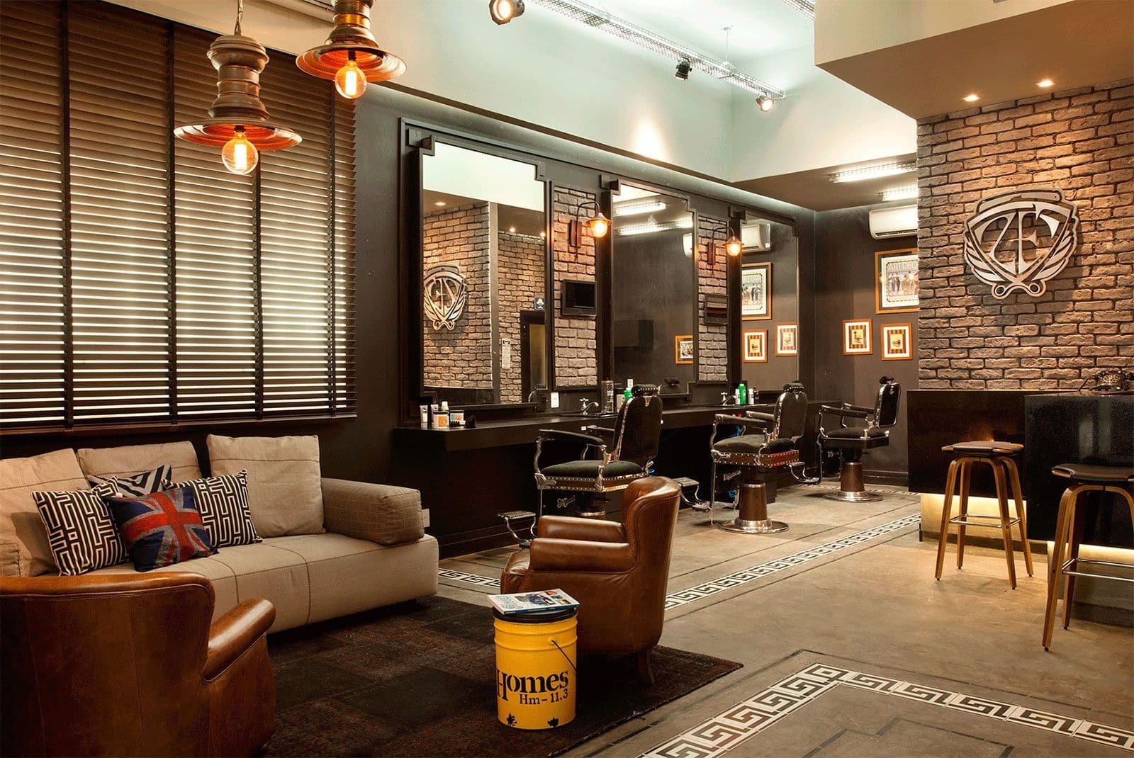 As molduras com espelhos são as mais comuns que encontramos nas barbearias, que normalmente são ambientes rústicos e com decoração clássica ou retrô.
