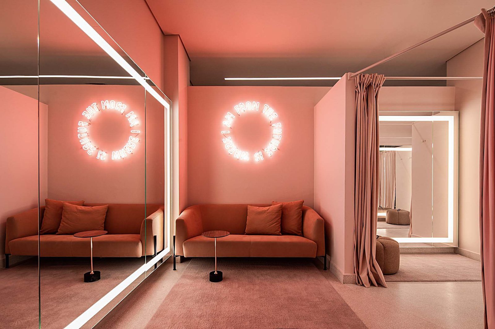 Além disso, o direcionamento da luz no espaço também é importante. O uso de luz frontal e indireta são técnicas que estimulam o comprador, pois provocam menos reflexo e projetam menos sombra. As pessoas se sentem mais bonitas ao se verem refletidas com esses tipos de iluminação.