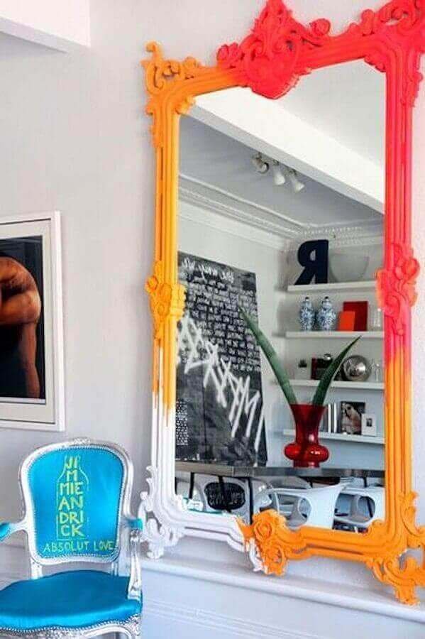 O espelho moldura provençal colorido é uma alternativa para ambientes modernos e também para a decoração de quartos jovens ou infantis que querem fugir daquele estilo muito clássico e certinho e o mais legal, esse modelo de espelho provençal pode ser usado nas mais variadas cores, basta escolher um que combine com a decoração do ambiente.