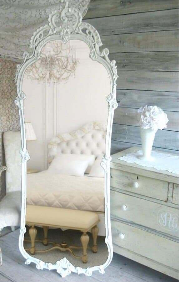 O quarto precisa ser um local agradável e bem aconchegante para nossos momentos de descanso, por isso, planejar bem a sua decoração é algo tão importante. Para um quarto compacto prefira o espelho provençal branco que ajuda na sensação de amplitude desse ambiente e evite modelos muito grandes, já em um quarto amplo o espelho provençal grande é bem vindo e pode ser usado de diversas formas.