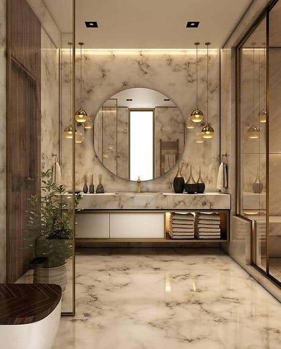 Uma ideia interessante é colocar mais de um espelho redondo para banheiro, assim como na foto abaixo, essa proposta é interessante quando o banheiro é utilizado por mais de uma pessoa, criando uma dinâmica melhor no espaço.
