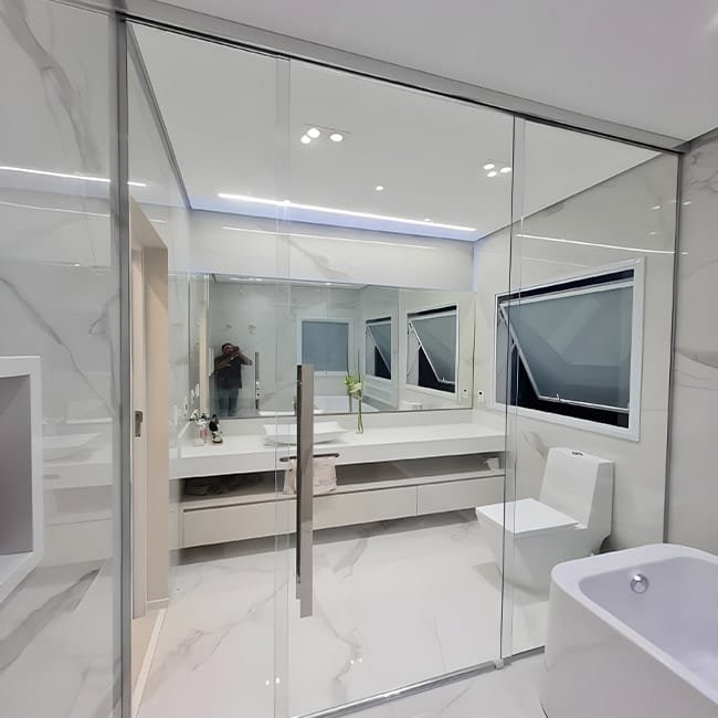 Com altura de 1,90m, o Box de Vidro Multi Box é adequado para qualquer banheiro. Essa altura padrão é perfeita para barrar os respingos de água, mantendo o resto do banheiro seco e limpo, ao mesmo tempo que proporciona um visual harmonioso e sofisticado.