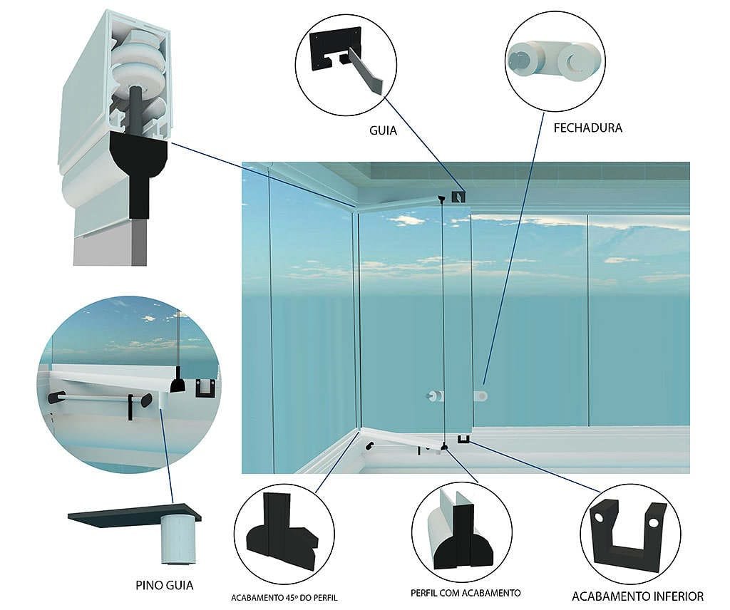 O Sistema de Envidraçamento de Áreas utiliza o que há de mais moderno em materiais de vedação e oferece 98% de estanqueidade.